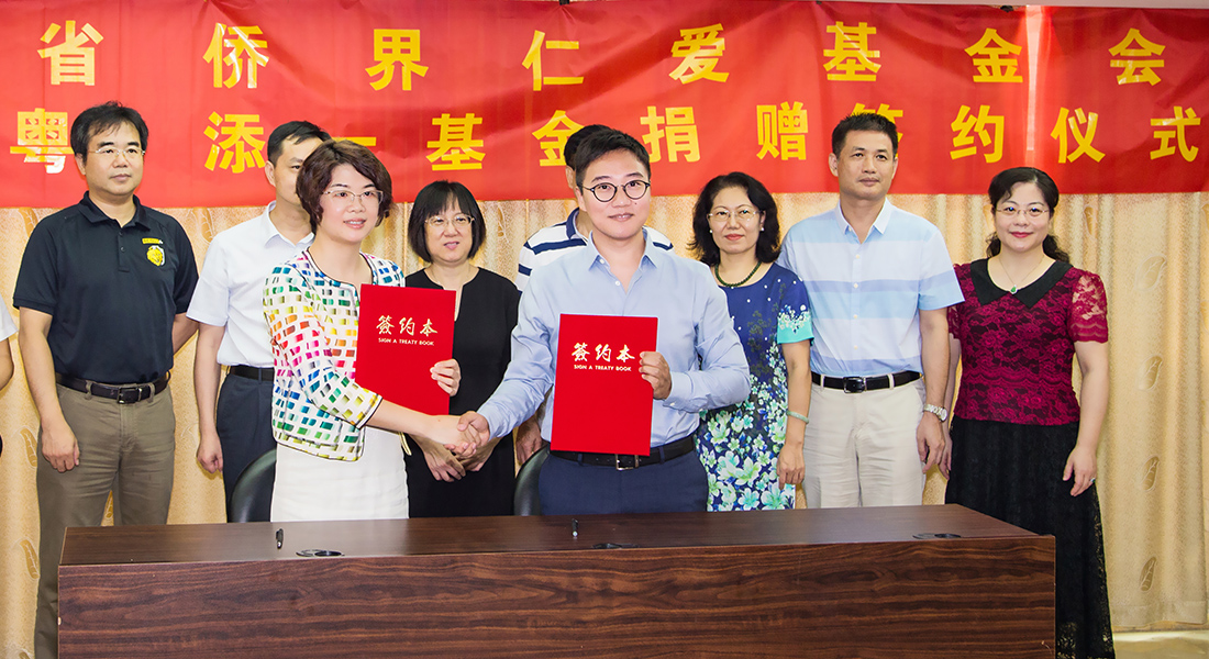2019年8月,华盛向广东省侨联·侨界仁爱基金会捐赠500万,成立“侨爱南粤·添一基金”,重点助力广东省奖教、奖学、助学工作,弘扬传统文化,扶贫济困及其他慈善公益项目。